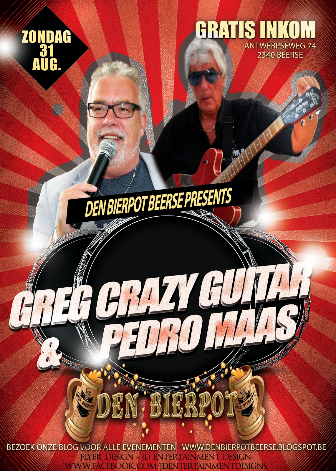 Zondag 31 Augustus 2014 Live Optredens en Music met Pedro Maas en Greg Crazy Guitar in Den Bierpot Beerse