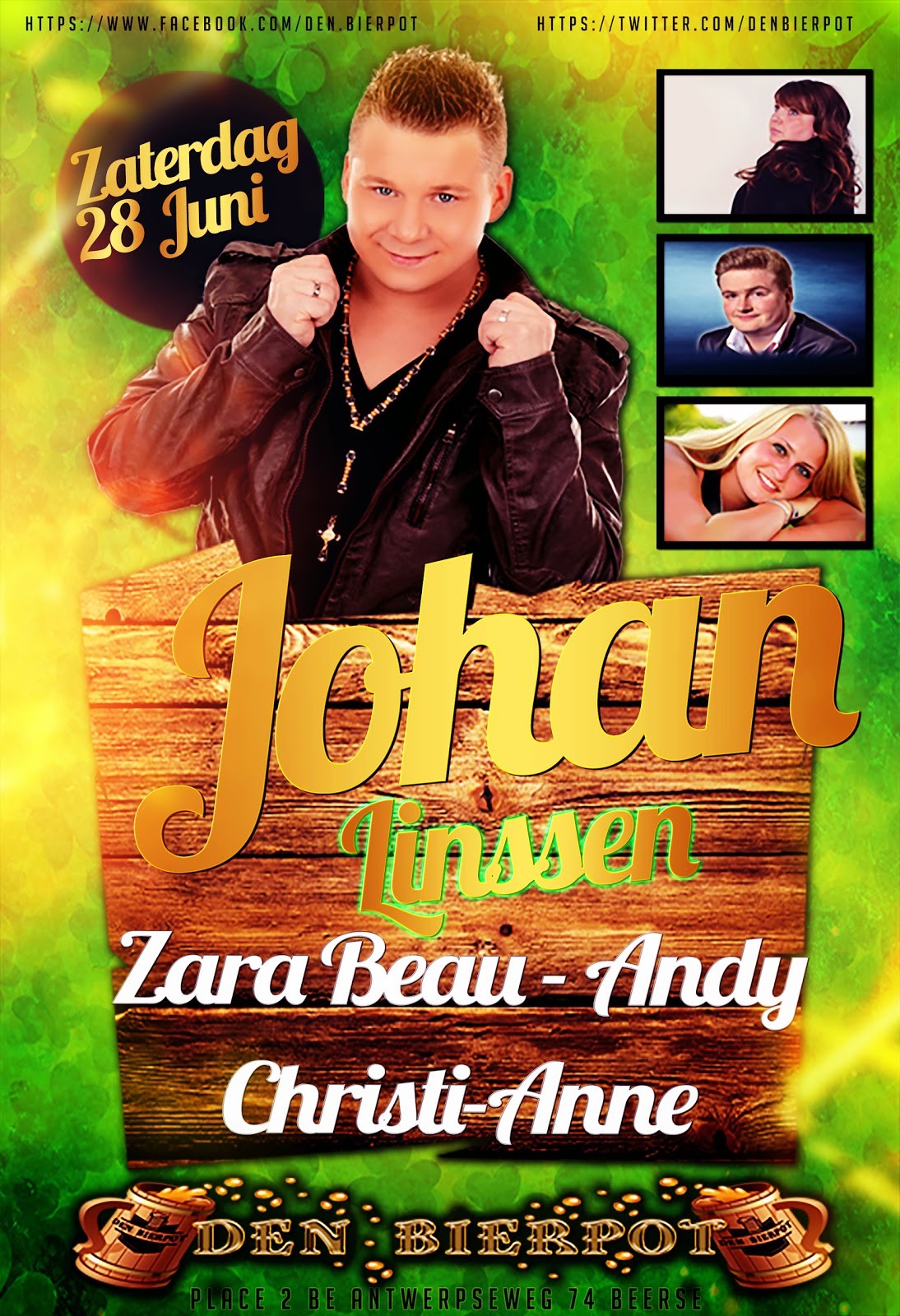 Zaterdag 28 Juni 2014 Live Optredens van Johan Linssen , Andy , Zara Beau en Christi-Anne in Den Bierpot Beerse