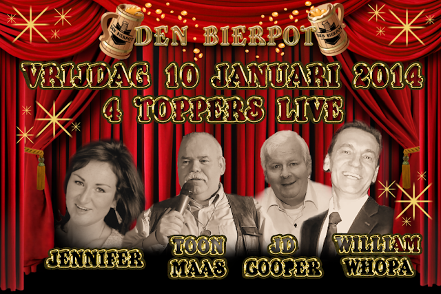 Vrijdag avond 10 Januari 2014 opent "Den Bierpot" zijn deuren weer en zullen Jennifer, Toon Maas, JD Cooper & William Whopa een avond vol ambiance en muziek verzorgen.
