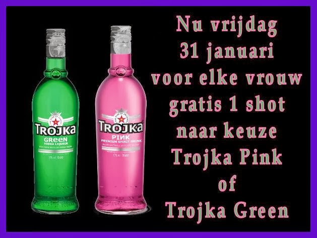 1 free shot of Trojka Pink of Trojka Green Vodka for the ladies !!!