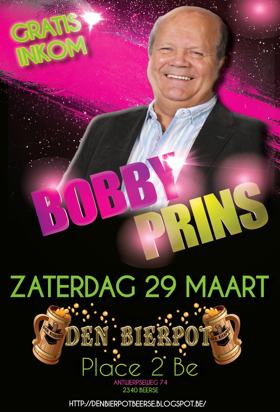 Zaterdag 29 Maart Live Optreden van Bobby Prins in Den Bierpot te Beerse